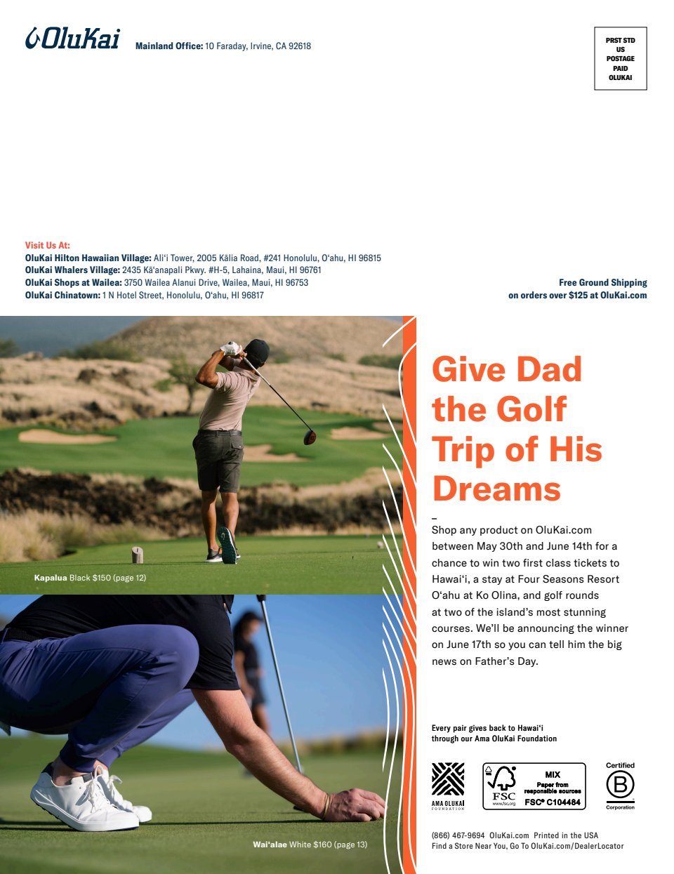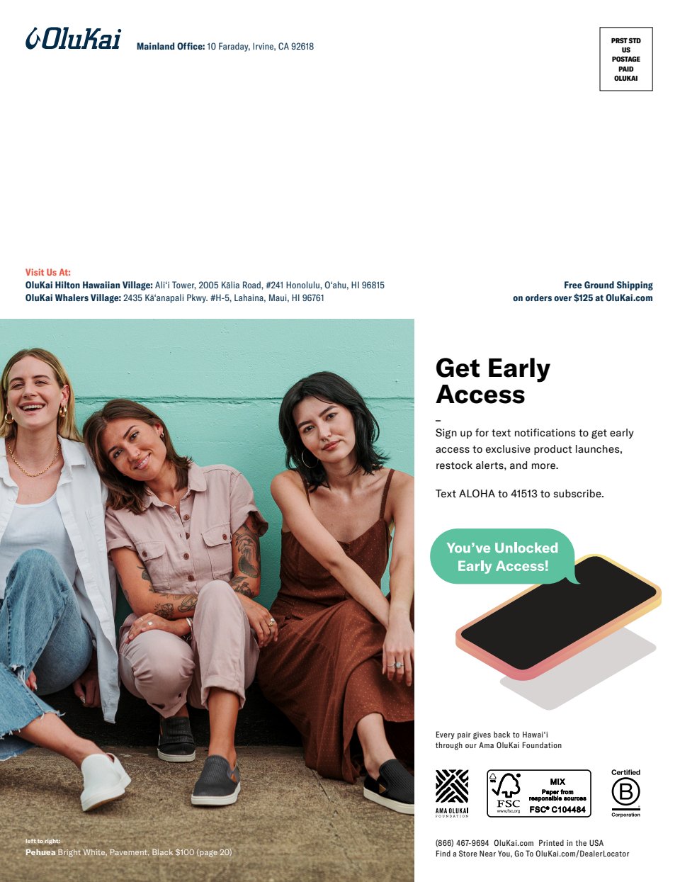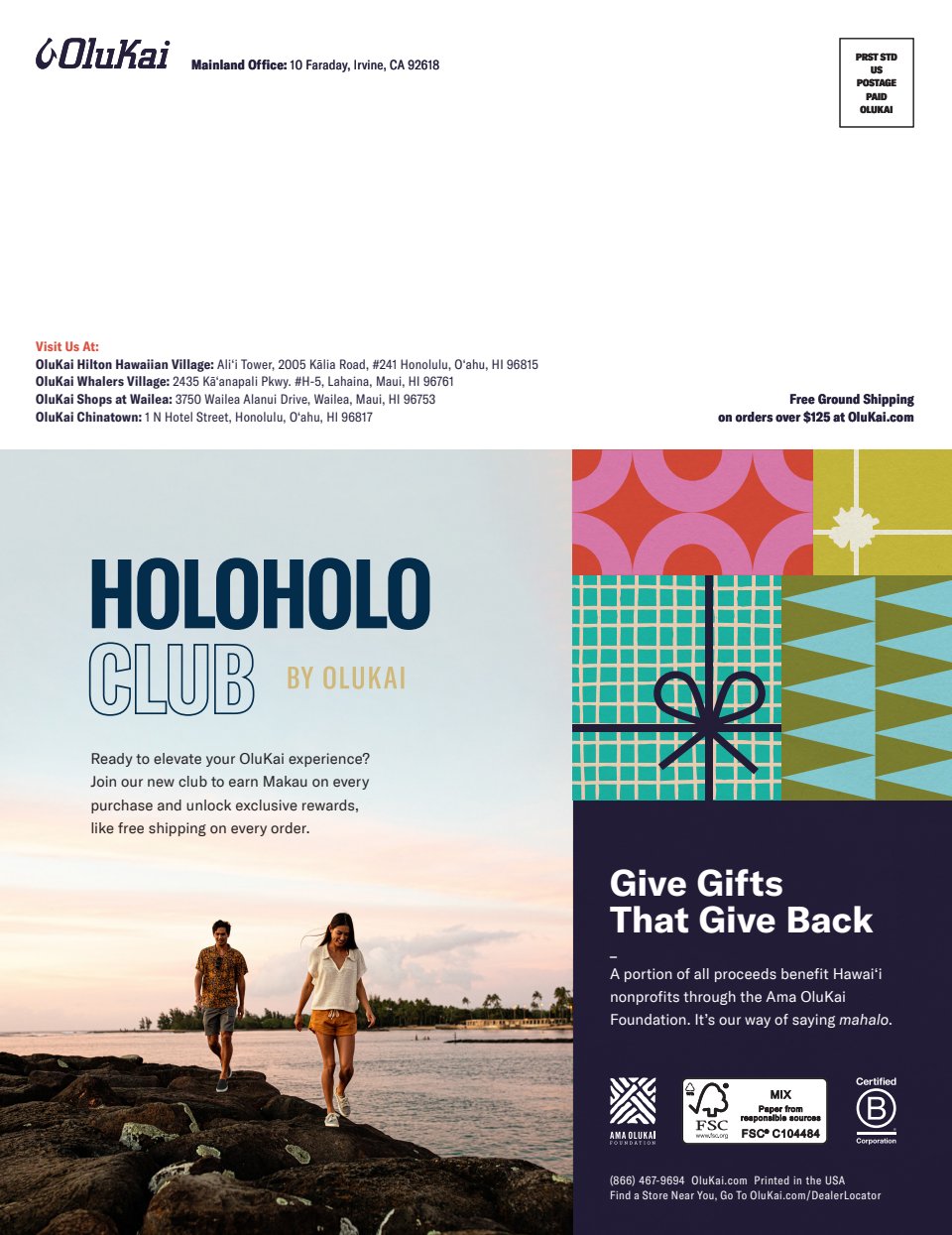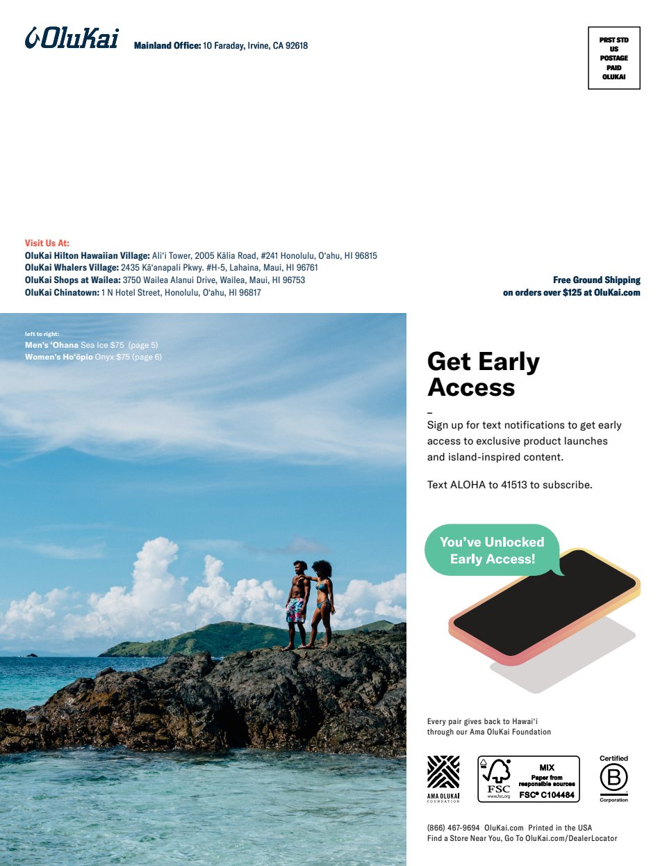 Print’s not dead! OluKai sends catalogs to those who still appreciate a more tactile experience (and it works). Online sales always spike right after these catalogs ship. Here are a few I’ve written.